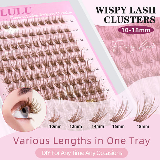 Uilulu Brown Lash Clusters 10-18mm Wispy Lash Clusters DIY Eyelash Extensions Individual Cluster Lashes (U19 Lashes Only, D Curl, 10-18 MIX)