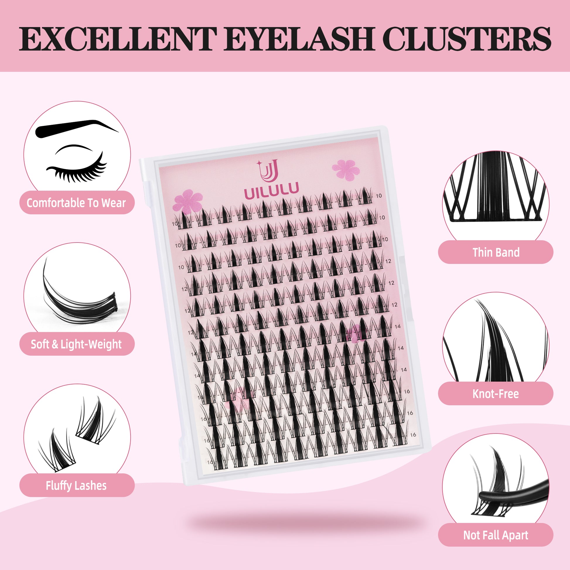 Premium Light-Weight Soft Fibers - Uilulu lash clusters are made of premium light-weight fibers. Born-soft PBT materials bring ultimately comfortable experience to wear the false eyelashes as your own natural lashes. Soft clusters lashes are not heavy on your lids. Keep a stable curl for natural look and it’s comfortable to wear all day long