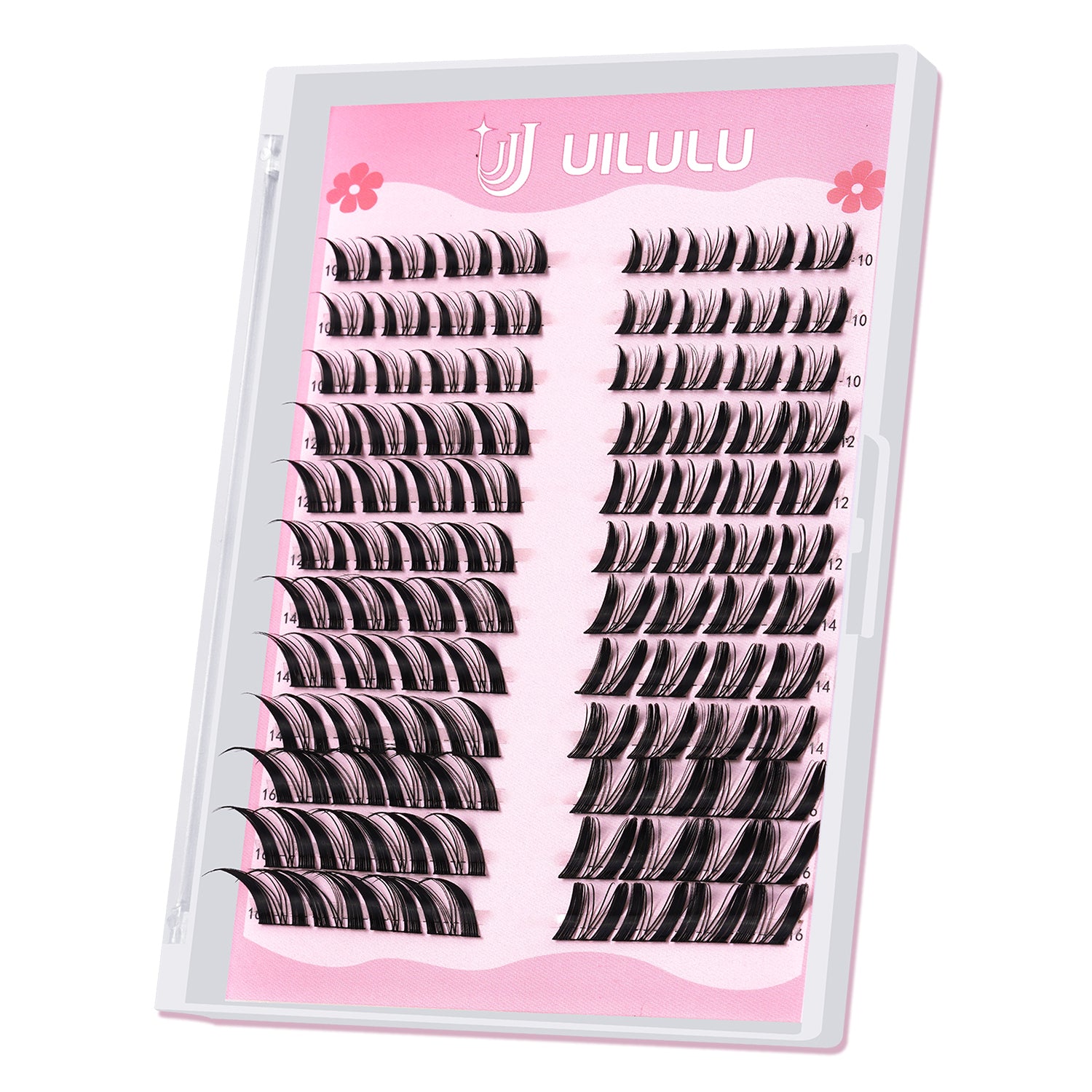 - UILULU Manga Fairy Lash Clusters: The package comes with one box of 96-count false eyelash clusters(D Curl, left-right cluster). Our lash clusters are made with the finest updated PBT materials to ensure softness, thickness, durability, and longevity, designed to give you fuller lashes that look more natural than traditional false eyelashes