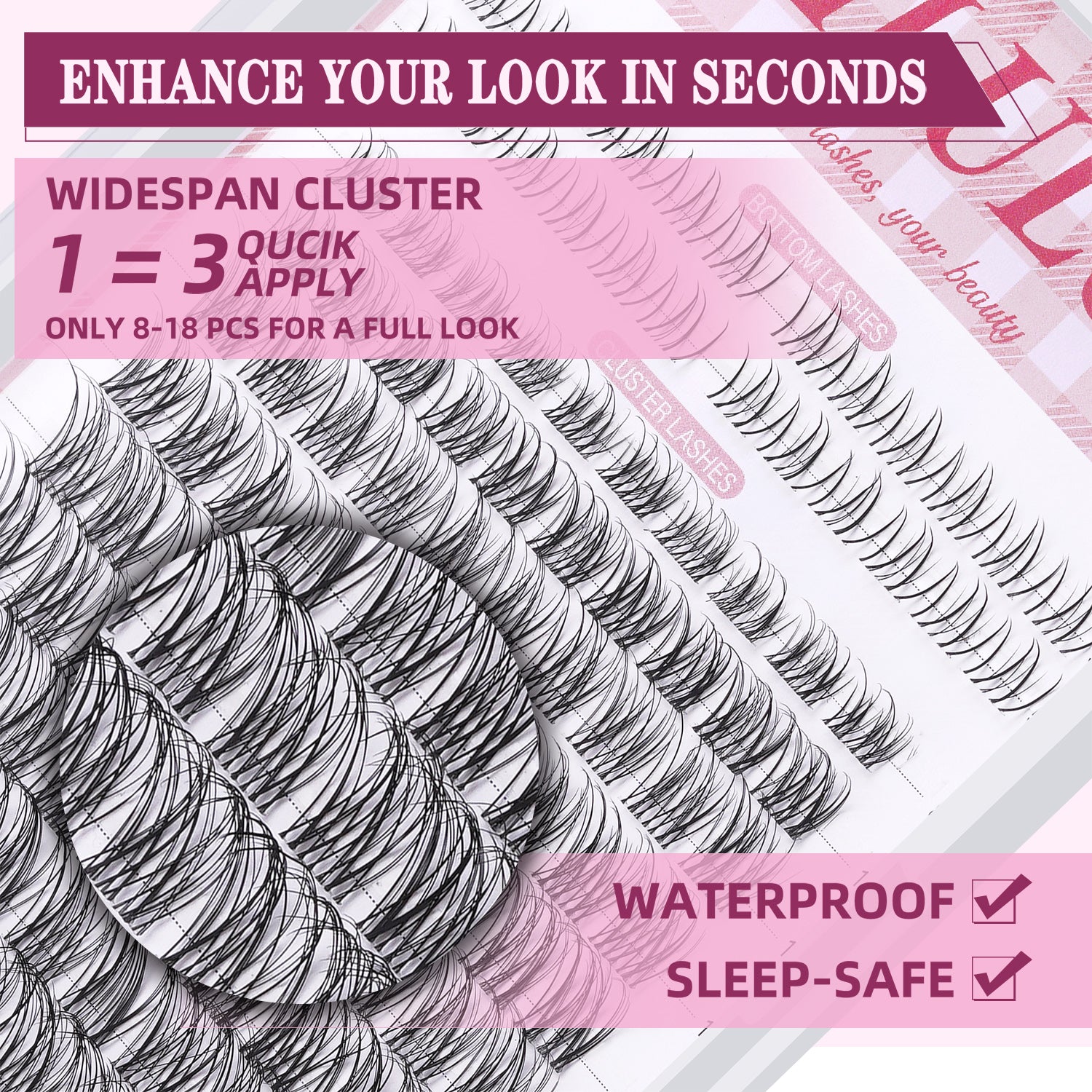 - Long-lasting Bond & Seal: Ultra-thin band lash clusters make you comfortable to wear false eyelashes. You can apply lash bond on your natural eyelashes or on false lash cluster bands and use the seal to lock when you finish your eyelash look. Our lashes stay firmly in place for 5-7days with proper care