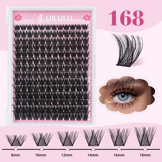 UILULU DIY Lash Extension Kit 168 Count D Curl Clusters Lashes Individual Lash Clusters , Lash Kit with Lash Bond & Seal, Lash Remover, Lash Tweezers, and Lash Brush D Curl-0.07-8-18MM (U04 Lash Kit)